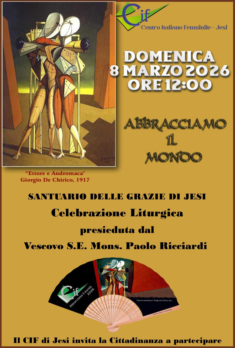 Domenica 8 marzo il Cif di Jesi celebra la Giornata Internazionale della Donna e invita a partecipare alla santa Messa presieduta dal vescovo mons. Paolo Ricciardi alle 12 al santuario delle Grazie. Il tema scelto dalla presidenza nazionale del Centro Italiano Femminile è “Abbracciamo il mondo”: l’argomento è certamente collegato alle guerre che funestano il nostro tempo e che vanificano la certezza, almeno della nostra generazione, di aver scongiurato una volta per sempre l’uso delle armi come mezzo di risoluzione delle controversie internazionali.