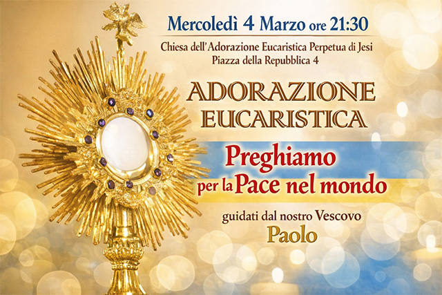 La sera di mercoledì 4 marzo alle 21.30 nella chiesa dell’Adorazione di Jesi il Vescovo guiderà un’ora di preghiera per la pace nel mondo.