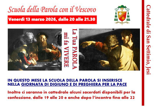 Il vescovo Paolo invita a prendere parte alla Scuola della Parola in Cattedrale la sera del 13 marzo dalle 20 alle 21,30 che si inserisce nell’ambito di questa Giornata di digiuno e preghiera per la pace.